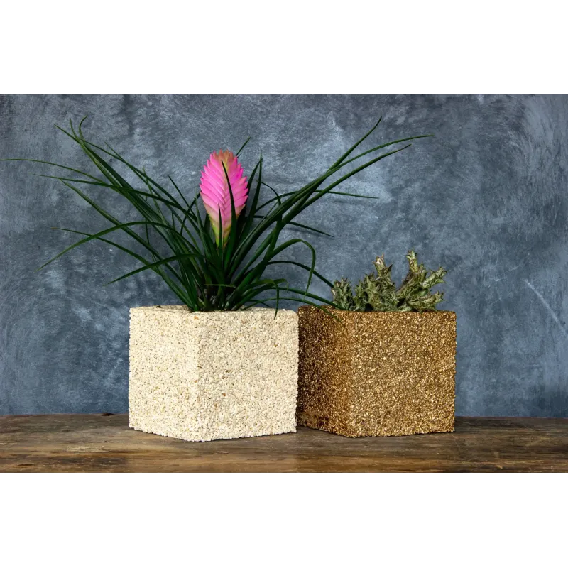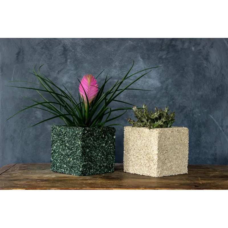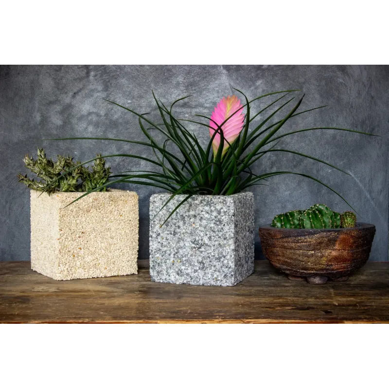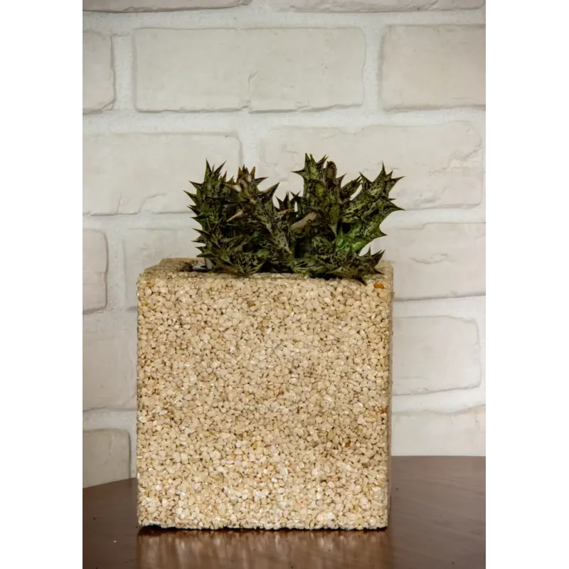 Donica Kamienna z Marmuru Marbi - Creamy | 15x15x15 cm, ręcznie robiona
