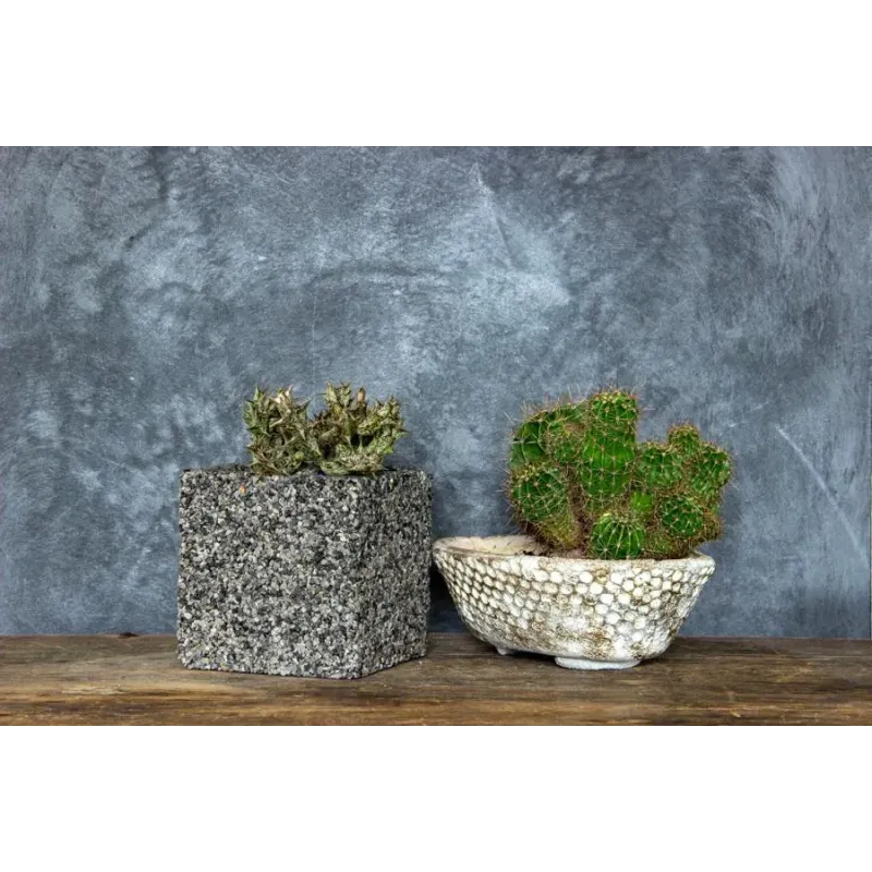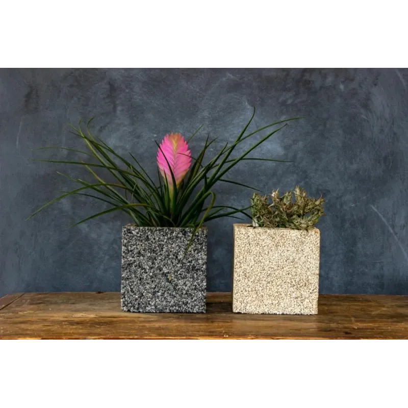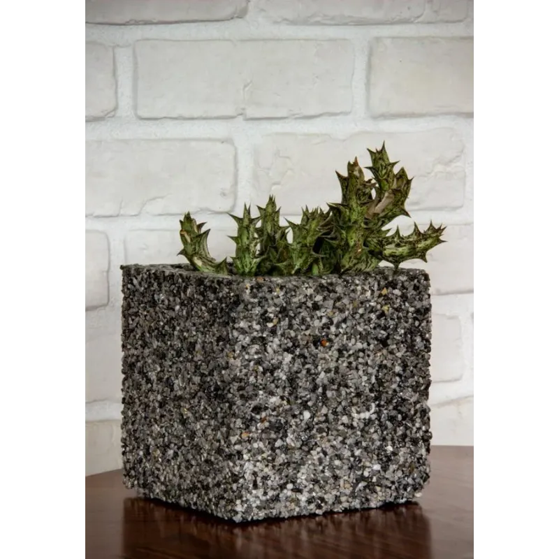 Dekoracyjna donica z kamienia Marbi - Gray 1 | 15x15x15 cm, ręcznie robiona marmurowa