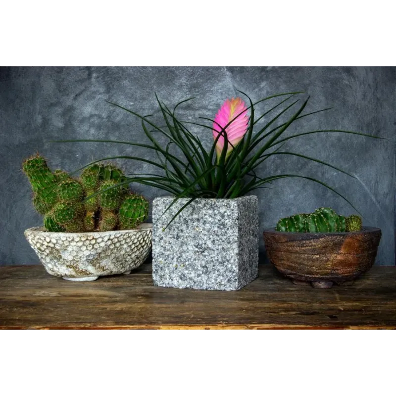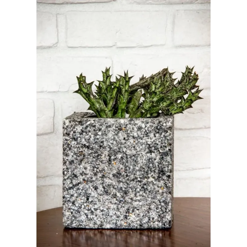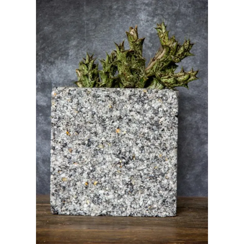 Szara donica z kamienia Marbi - Gray 2 | 15x15x15 cm, marmurowa ręcznie robiona