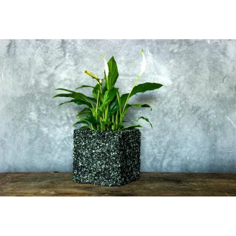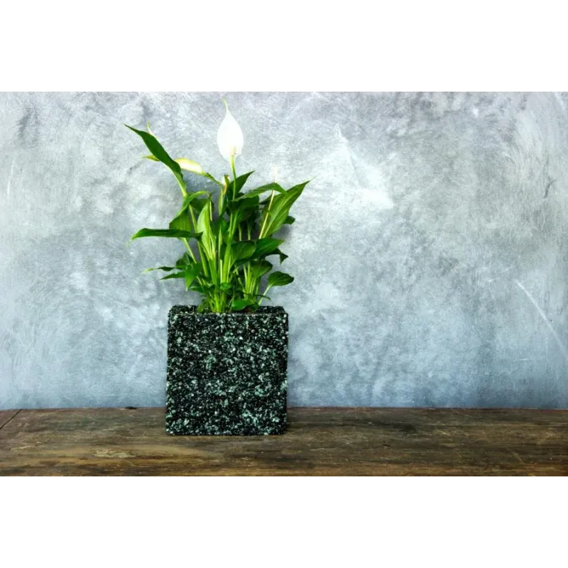 Czarna i zielona donica kamienna 15x15x15 cm Marbi - Black & Green | Styl, trwałość i luksus