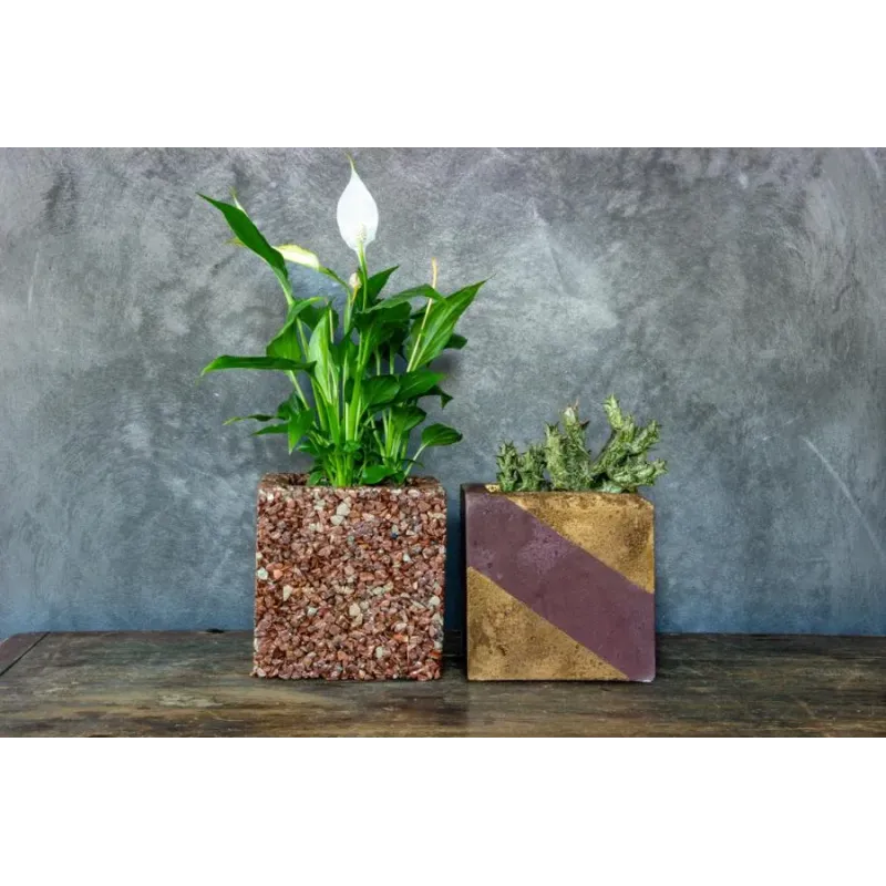 Brązowa donica kamienna 15x15x15 cm Marbi - Bronze | Elegancja na lata