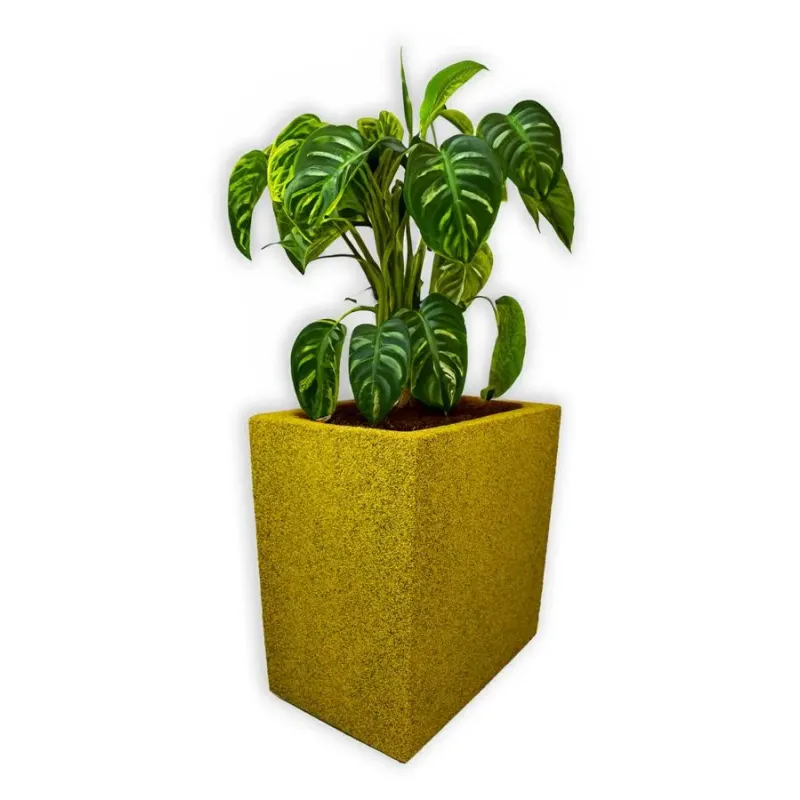 Intensywny żółty kolor – Rozświetla przestrzeń, podkreśla zieleń roślin i nadaje całości nowoczesny, optymistyczny charakter. Ten wyrazisty odcień sprawia, że donica staje się nie tylko tłem dla roślin, ale też mocnym, dekoracyjnym akcentem. Doskonale sprawdza się we wnętrzach, które potrzebują energetycznego przełamania – np. w minimalistycznych aranżacjach lub przestrzeniach o stonowanej kolorystyce.