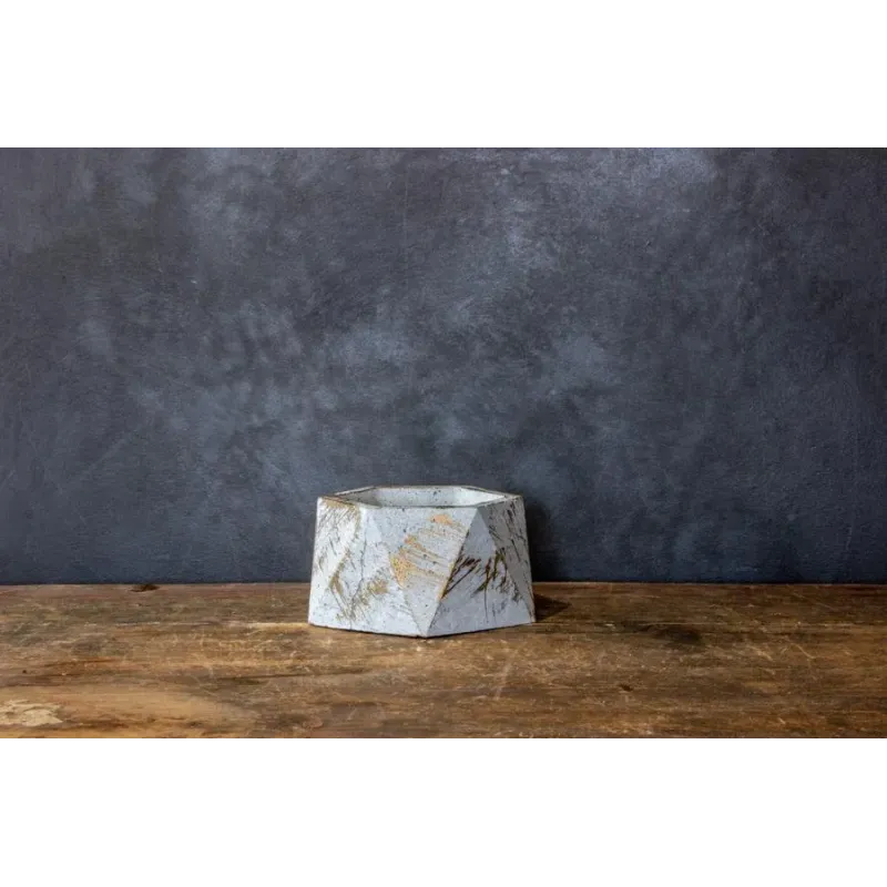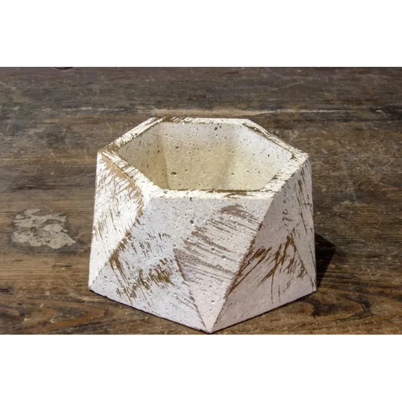 Biało-złota doniczka sześciokątna betonowa Dodo – Dafne Gold | Mała i stylowa do wnętrz