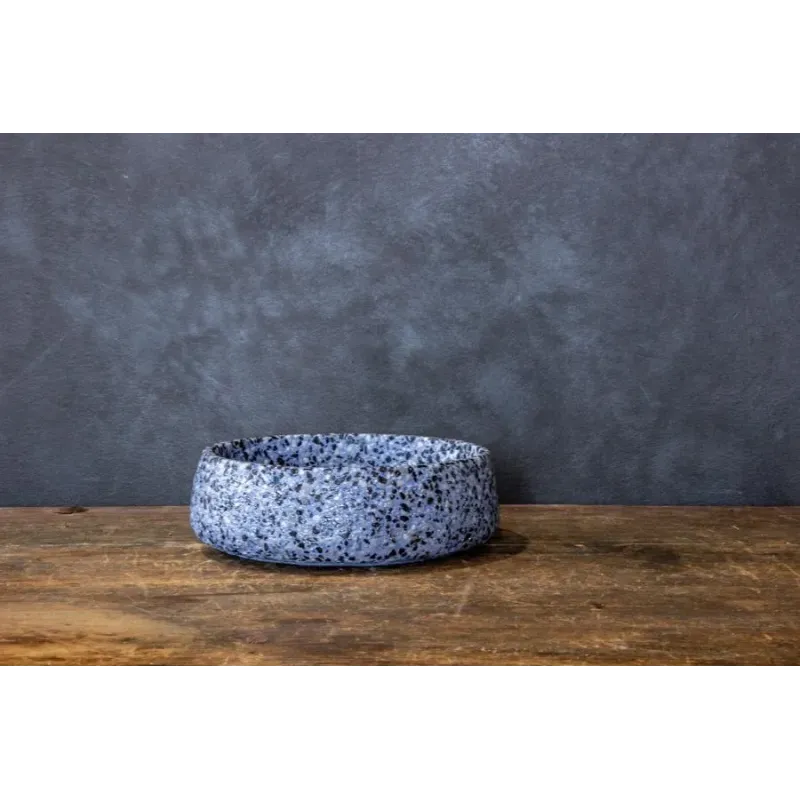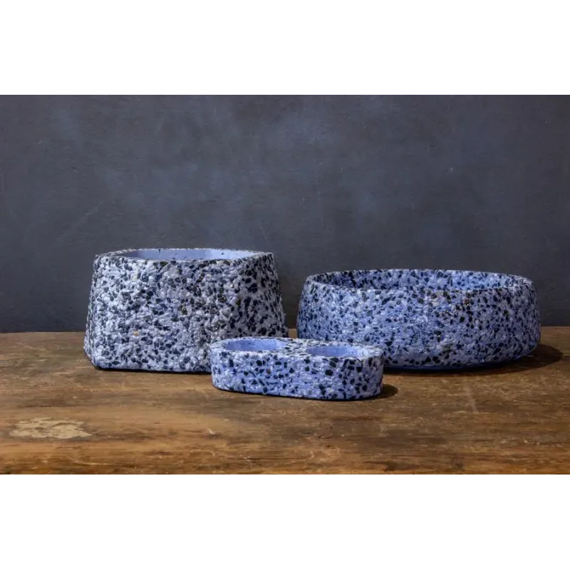 Niebieska okrągła doniczka z marmurem niska Dodo – Kama 1 | Stylowa misa betonowa