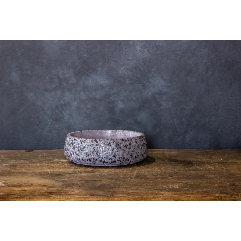 Pudrowa okrągła doniczka z marmurem niska Dodo – Kama 3 | Designerska misa betonowa