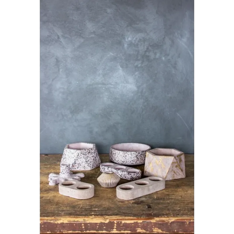 Świecznik betonowy pudrowy na 2 tealighty Dodo – P2 | Minimalistyczny design handmade