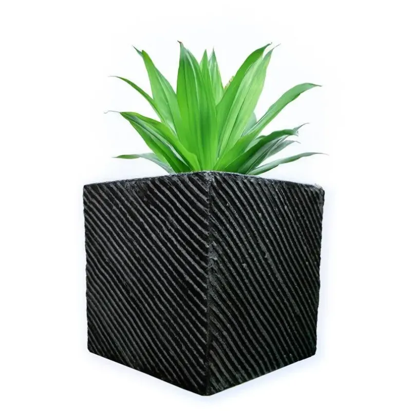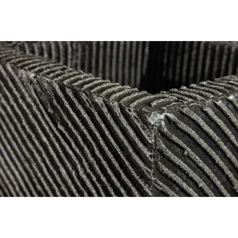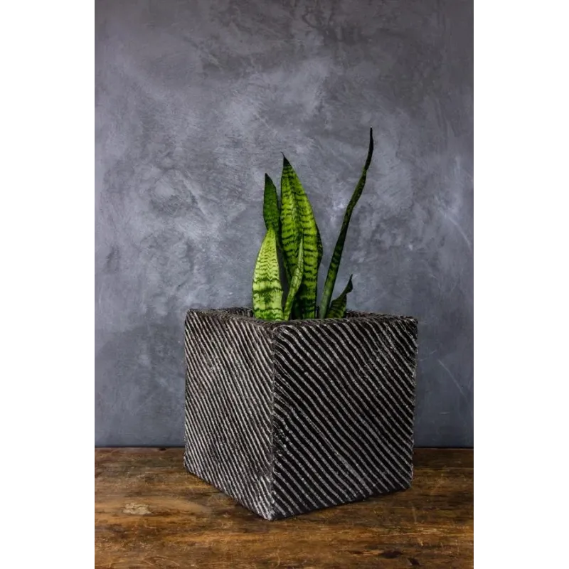 Geometryczna forma i surowa faktura nadają donicy unikalnego wyglądu. Dzięki wyjątkowemu połączeniu srebra i czerni, donica wprowadza do wnętrza nowoczesny, a zarazem surowy charakter.