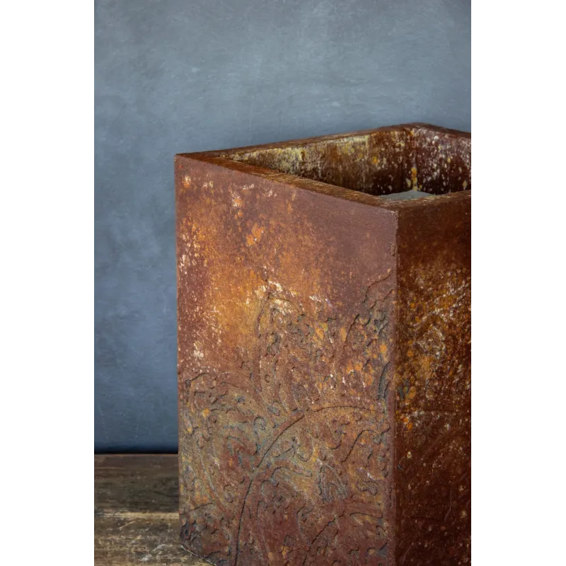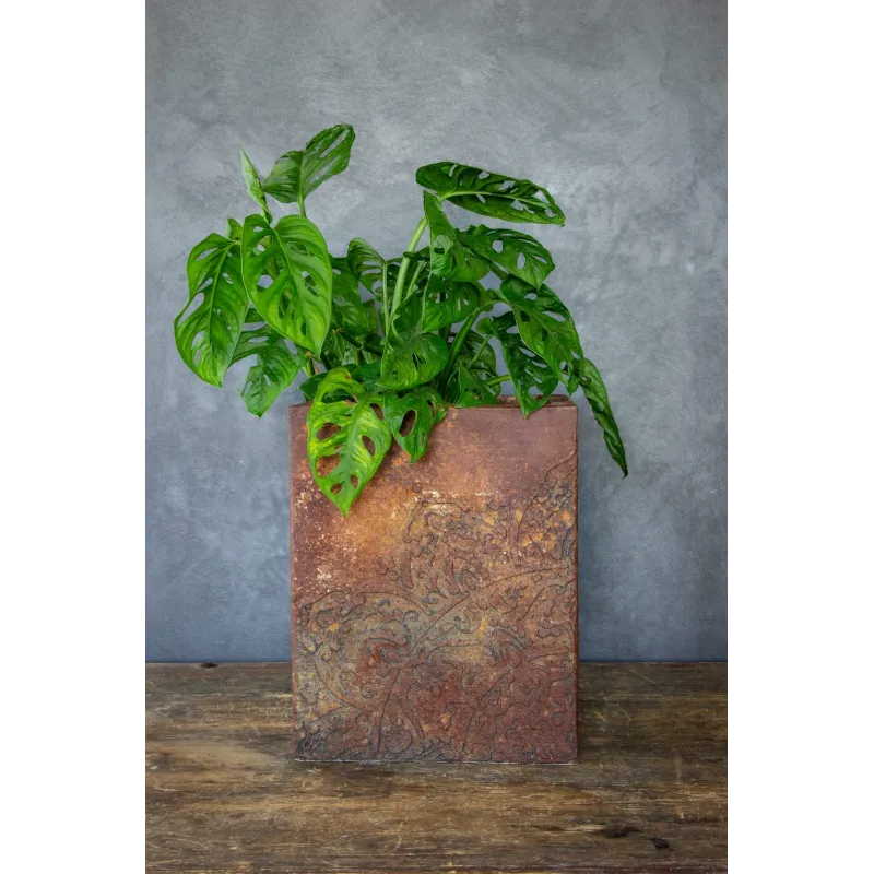 Stylowa osłonka na donice 30 cm z mandalą łączy industrialny charakter z orientalnym akcentem. Wykonana ręcznie z XPS i pokryta tynkiem betonowym, jest lekka, a jednocześnie trwała. Dzięki zabezpieczeniu żywicą UV oraz masą hydrofobową zachowuje swój wygląd na lata. Idealnie sprawdzi się w salonie, biurze czy na zakrytym tarasie, nadając przestrzeni wyjątkowy klimat. Ze względu na w pełni ręczne wykonanie, wymiary osłonki mogą różnić się o około ±1 cm. Projekt Rafaello Romano.