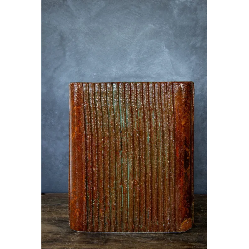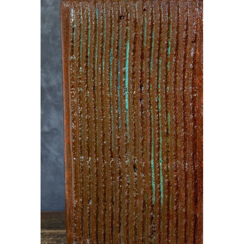 Powierzchnia o pionowej strukturze sprawia, że osłonka staje się wyjątkową ozdobą, a dodatkowa warstwa żywicy nadaje jej połysk, który podkreśla fakturę i kolory.