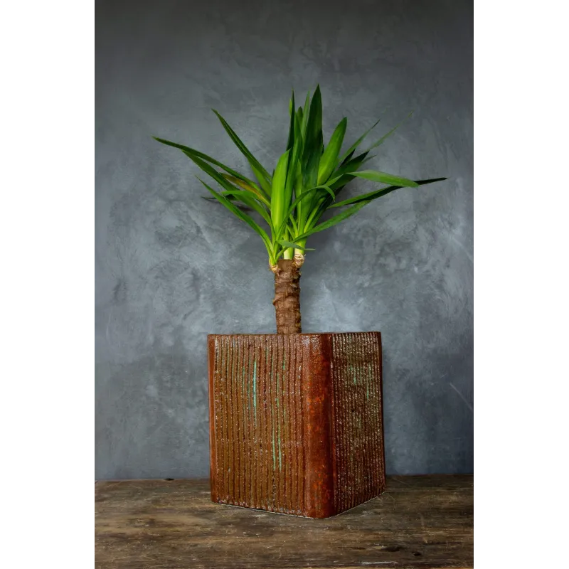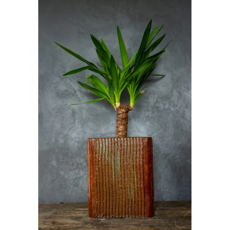 Projektowana z myślą o dekoracji salonu, gabinetu czy restauracji, donica doskonale sprawdza się również na zakrytych tarasach. Jej styl loft pasuje zarówno do nowoczesnych przestrzeni, jak i do wnętrz urządzonych w stylu klasycznym. Dzięki efektowi lakierowanego drewna wprowadza do aranżacji ciepło, a jednocześnie zachowuje industrialny charakter.