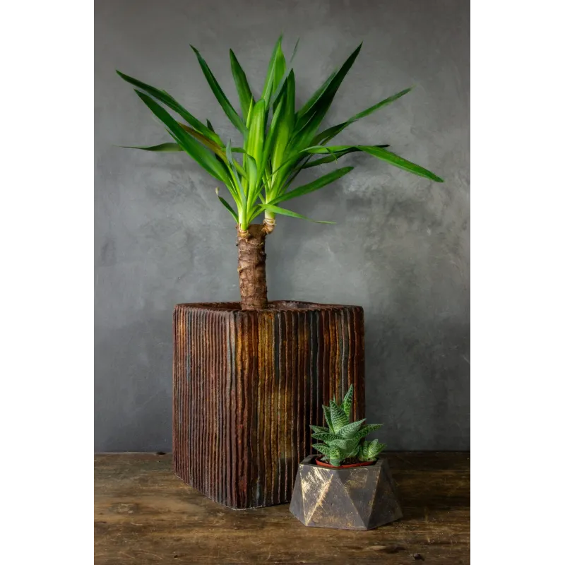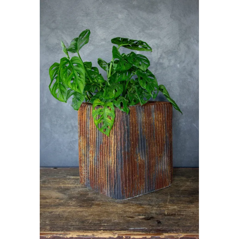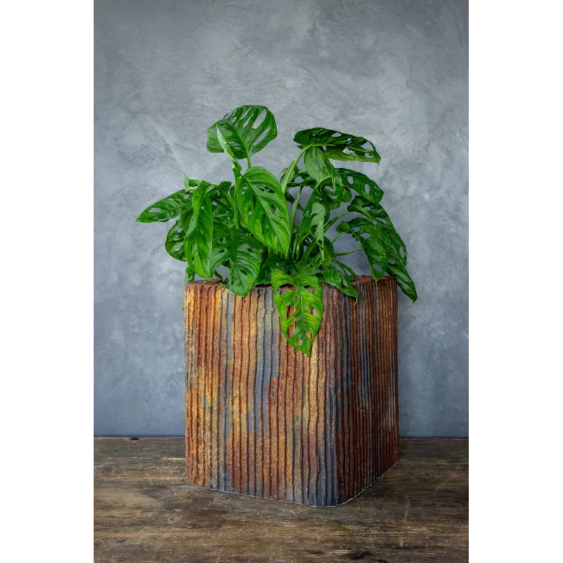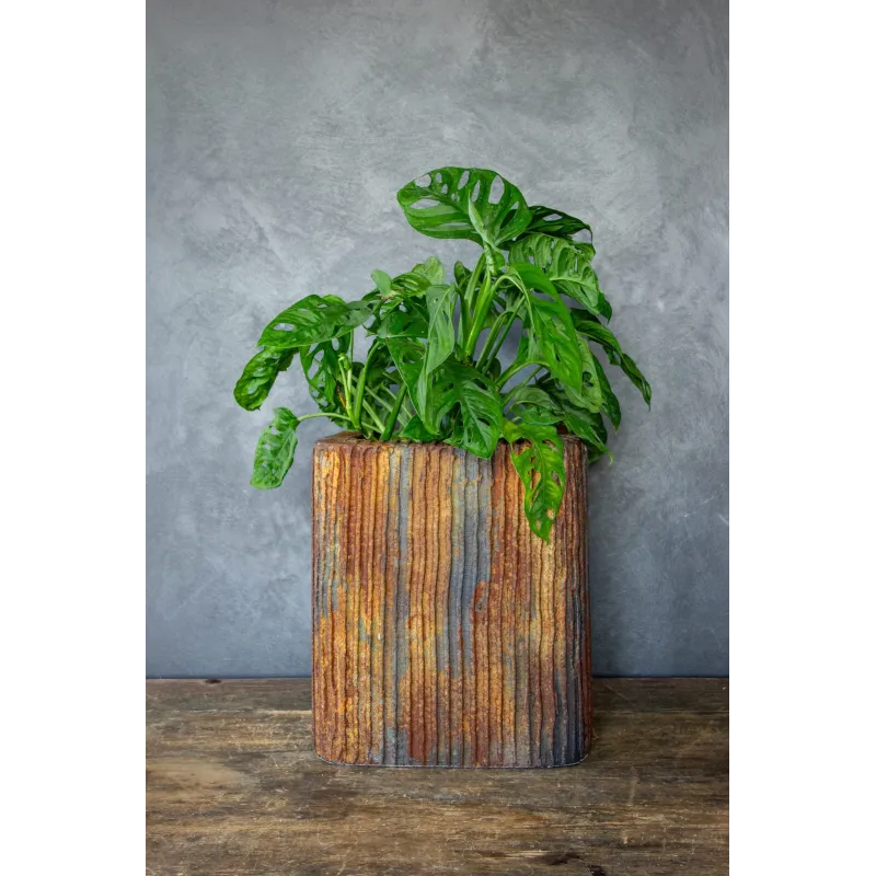 Projektowana z myślą o dekoracji wnętrz, świetnie sprawdzi się w salonie, jadalni, biurze, restauracji czy na zadaszonym tarasie. Jej strukturalna forma i kolorystyka inspirowana naturalnymi procesami patynowania pięknie komponują się z zielenią roślin, tworząc harmonijną i przyciągającą uwagę całość.