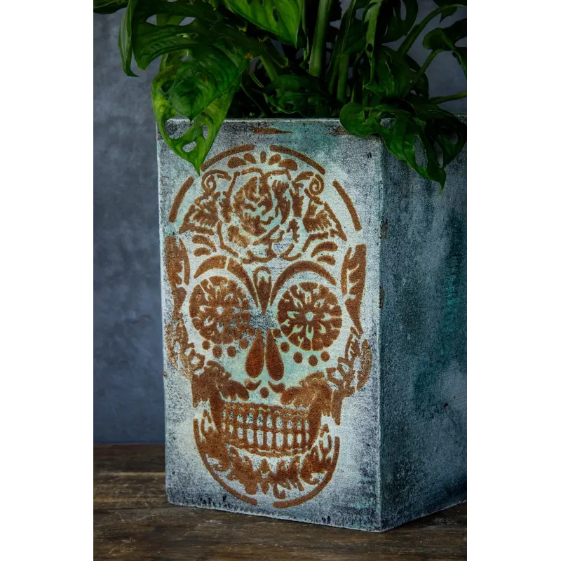 Osłonka na doniczkę z czaszką 21 x 21 x 30 cm - ręcznie robiona