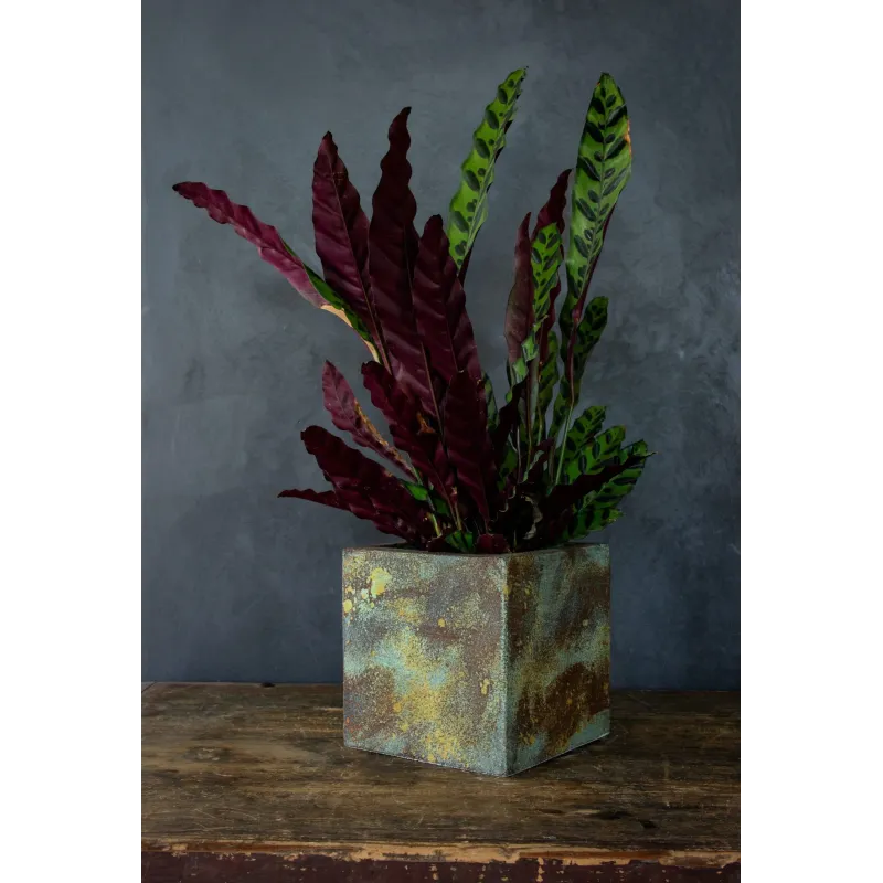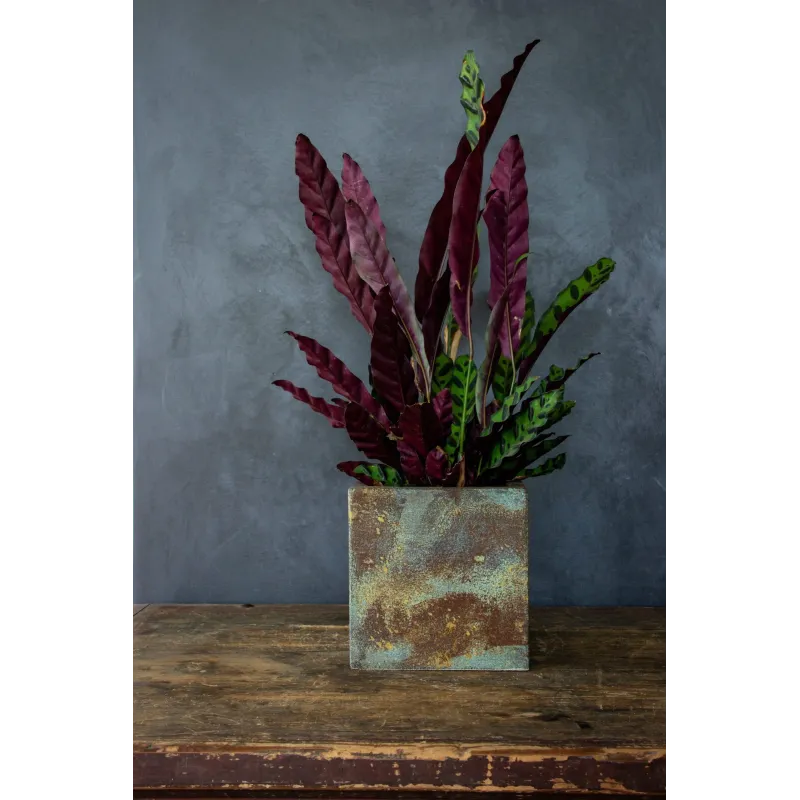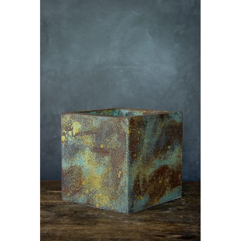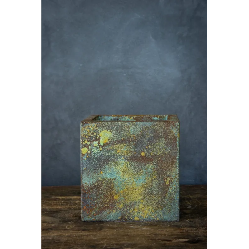Kwadratowa osłonka na doniczkę loft 20 x 20 x 21 cm to ręcznie robiony dodatek w industrialnym stylu, wykonany z XPS i pokryty tynkiem betonowym. Dzięki żywicy UV i masie hydrofobowej zachowuje wygląd na lata. Idealna do wnętrz i zakrytych tarasów, może różnić się wymiarem o ±1 cm ze względu na rzemieślnicze wykonanie. Projekt Rafaello Romano.