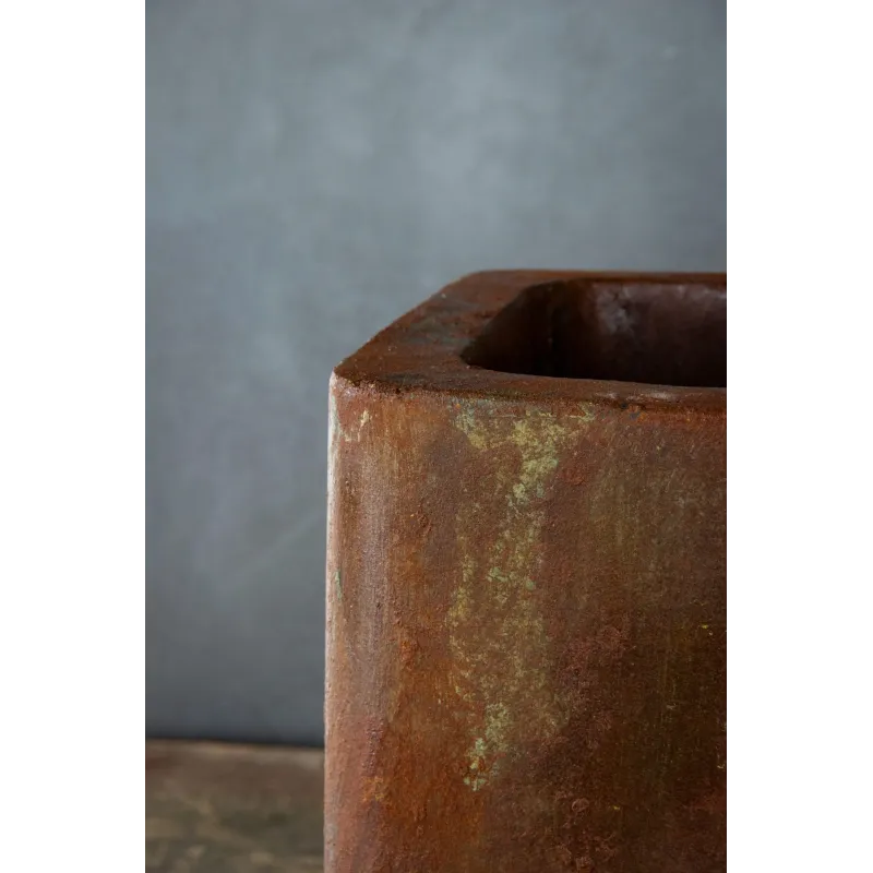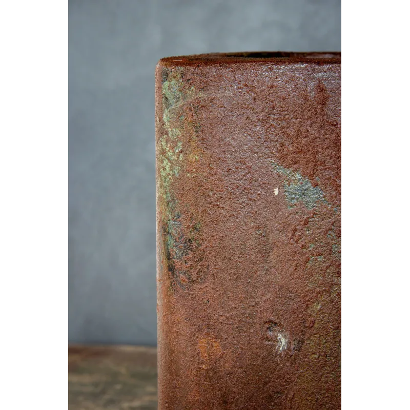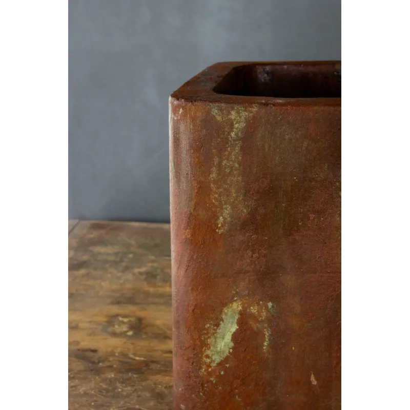 Rustykalna osłonka na doniczkę loft to propozycja dla osób, które chcą wprowadzić do swojej przestrzeni nutę naturalności, a jednocześnie zachować loftowy charakter. Dzięki ręcznemu wykonaniu każdy egzemplarz jest jedyny w swoim rodzaju, a niewielkie różnice w kolorze i fakturze dodatkowo podkreślają autentyczny, rzemieślniczy charakter produktu. Co więcej, ciepłe odcienie rdzawego brązu w połączeniu z zielonkawymi akcentami tworzą harmonijną całość i pięknie współgrają z roślinami.