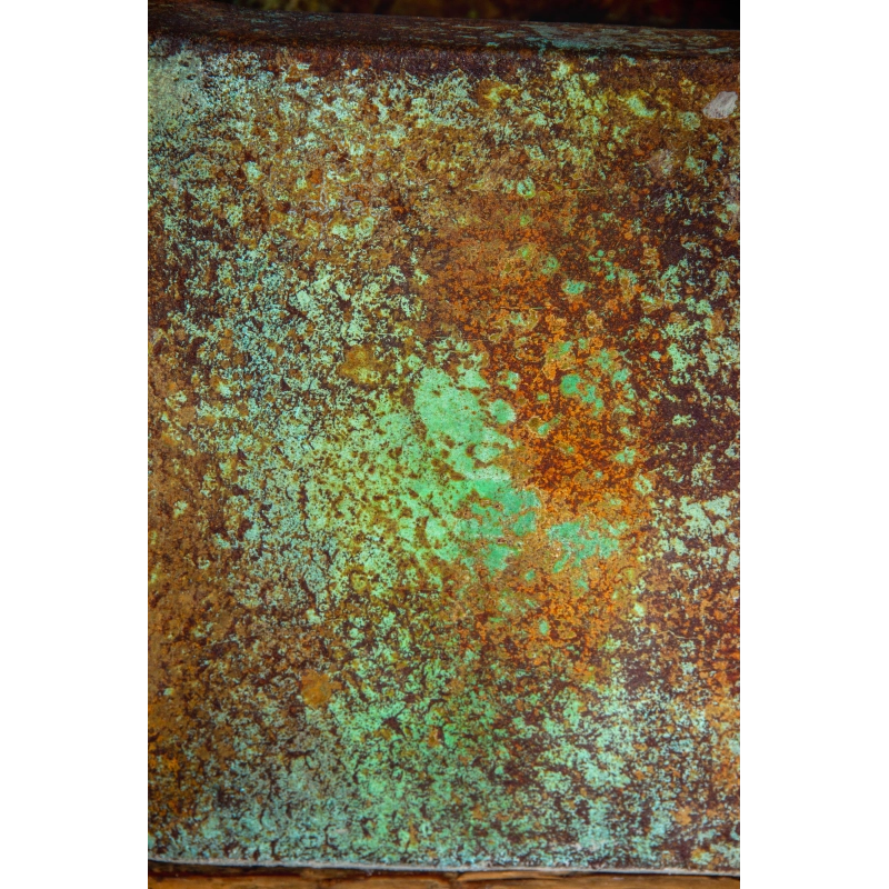 Ręcznie wykonanadonica w kolorze rdzy z naturalną zieloną patyną. Powierzchnia o gładkiej strukturze i subtelnym połysku, tworzy wyjątkowy, industrialno-artystyczny klimat. Odporna na wodę i promieniowanie UV. Idealna do wnętrz i zakrytych tarasów.
