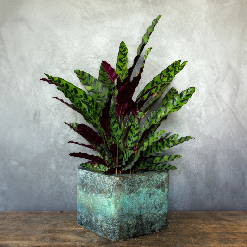 Mocny kolor patyny stanowi idealne tło dla roślin domowych: