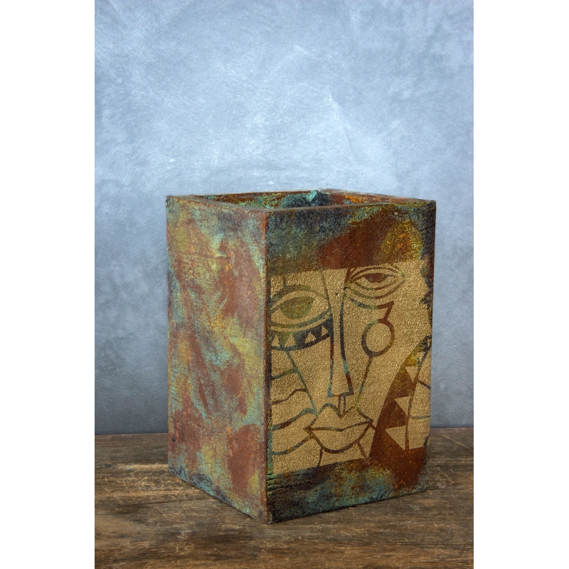 Uwaga: Każdy egzemplarz jest tworzony ręcznie, dlatego subtelne różnice w teksturze, patynowaniu i rozkładzie barw czynią każdą sztukę absolutnie unikatową. Wymiary 21 × 21 × 30 cm sprawiają, że osłonka świetnie prezentuje się zarówno jako oprawa dla roślin ozdobnych, jak i samodzielna dekoracja.