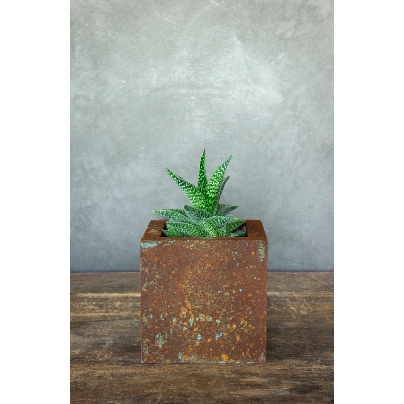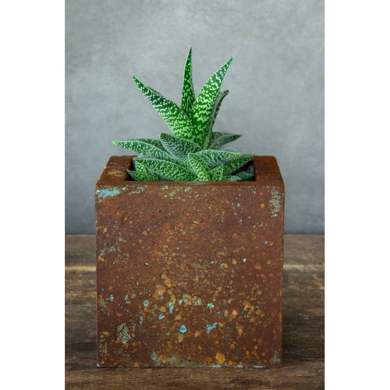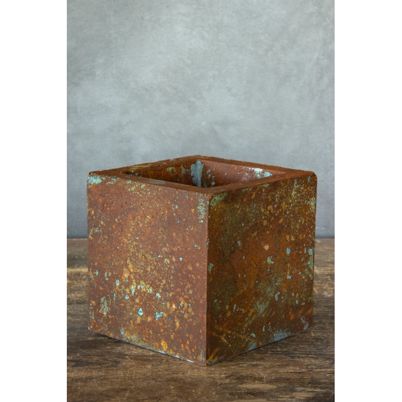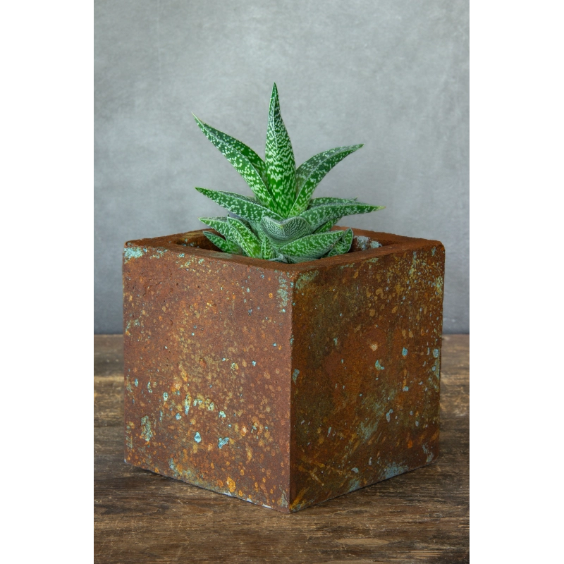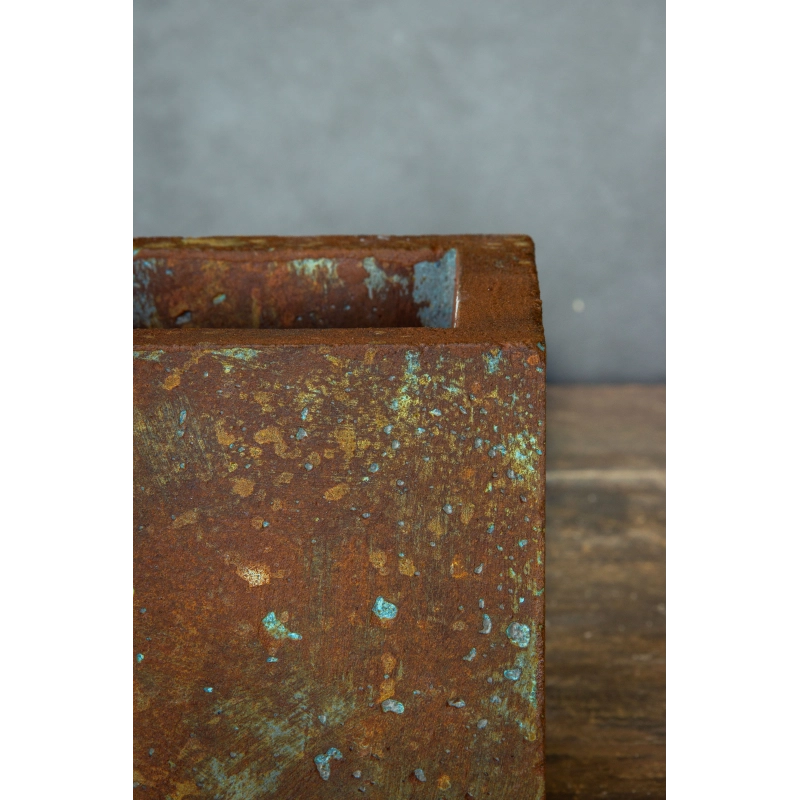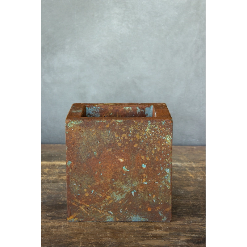 Betonowa osłonka 15×15×15 cm – efekt rdzy i turkusowej patyny