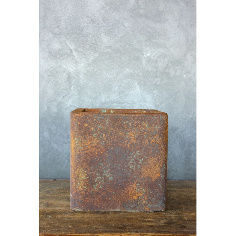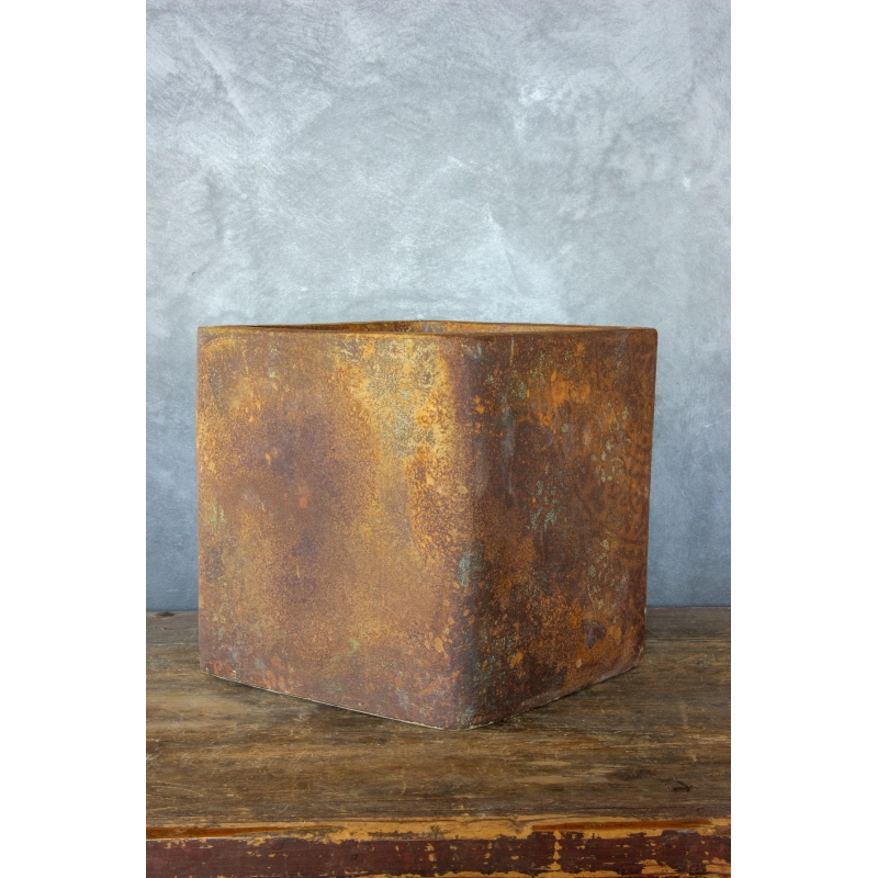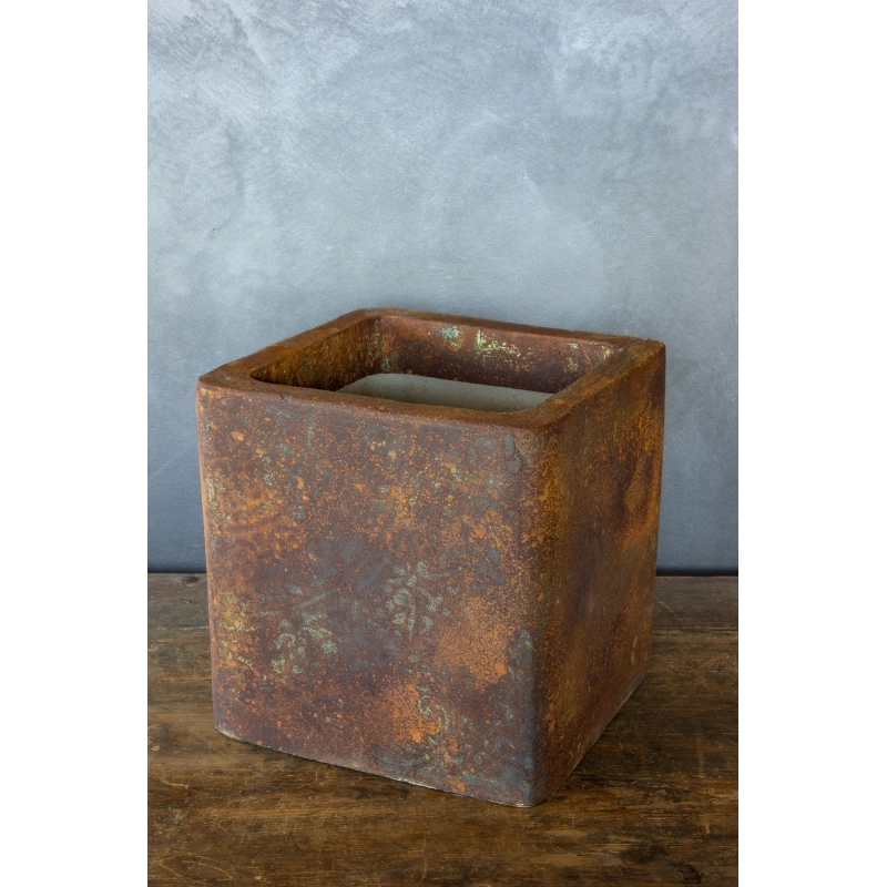Donica, Osłonka na doniczkę efekt kortenu 30 × 30 × 30 cm – ręcznie wykonana, rustykalna, premium